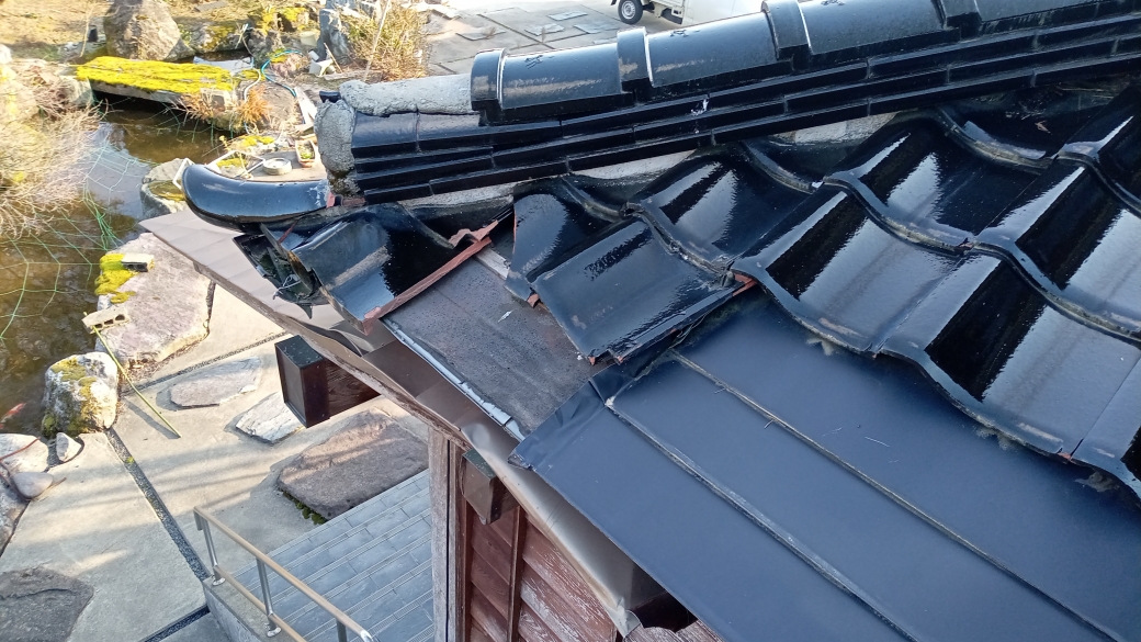 柏崎にて、屋根の部品が飛んでいると連絡がありました。